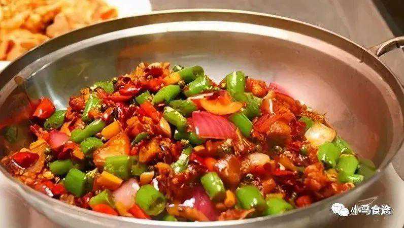 3.净锅入色拉油烧热,先下大量的姜末和蒜末炒香,再把混椒和香水鱼调料倒进去炒匀,掺入适量的鲜汤后倒入兔丁,烧至入味便可起锅装盘。
