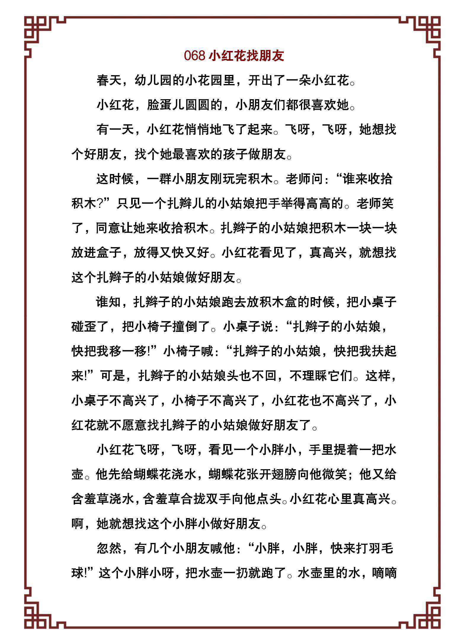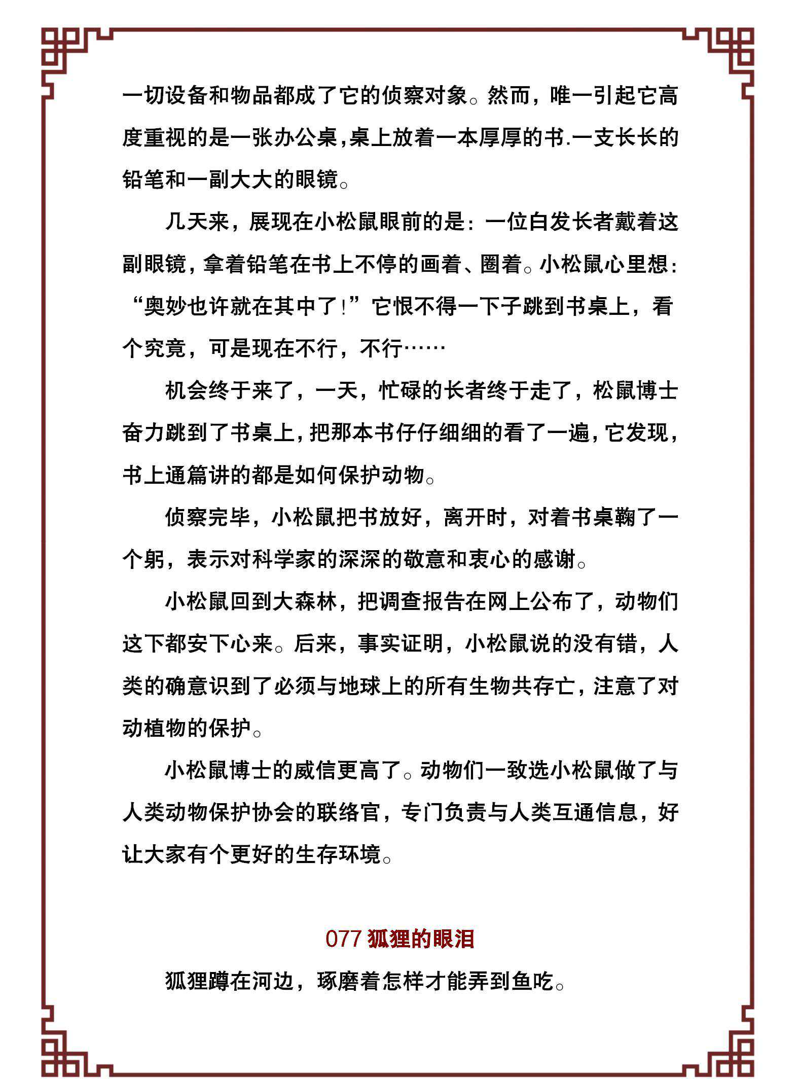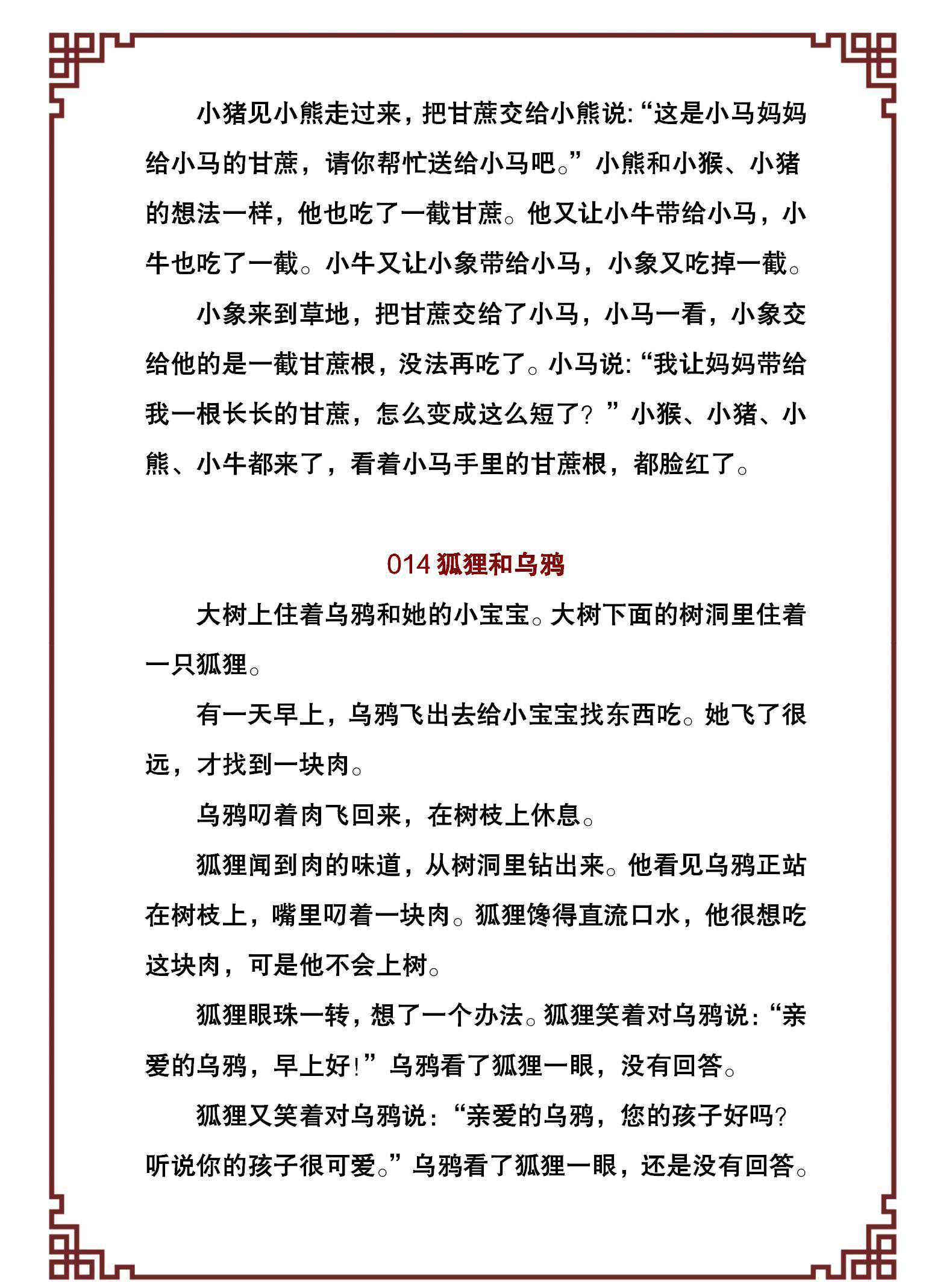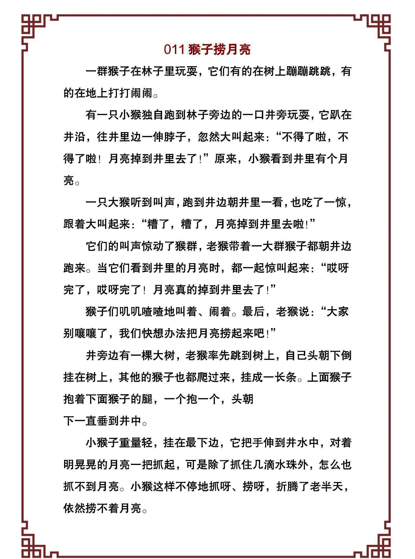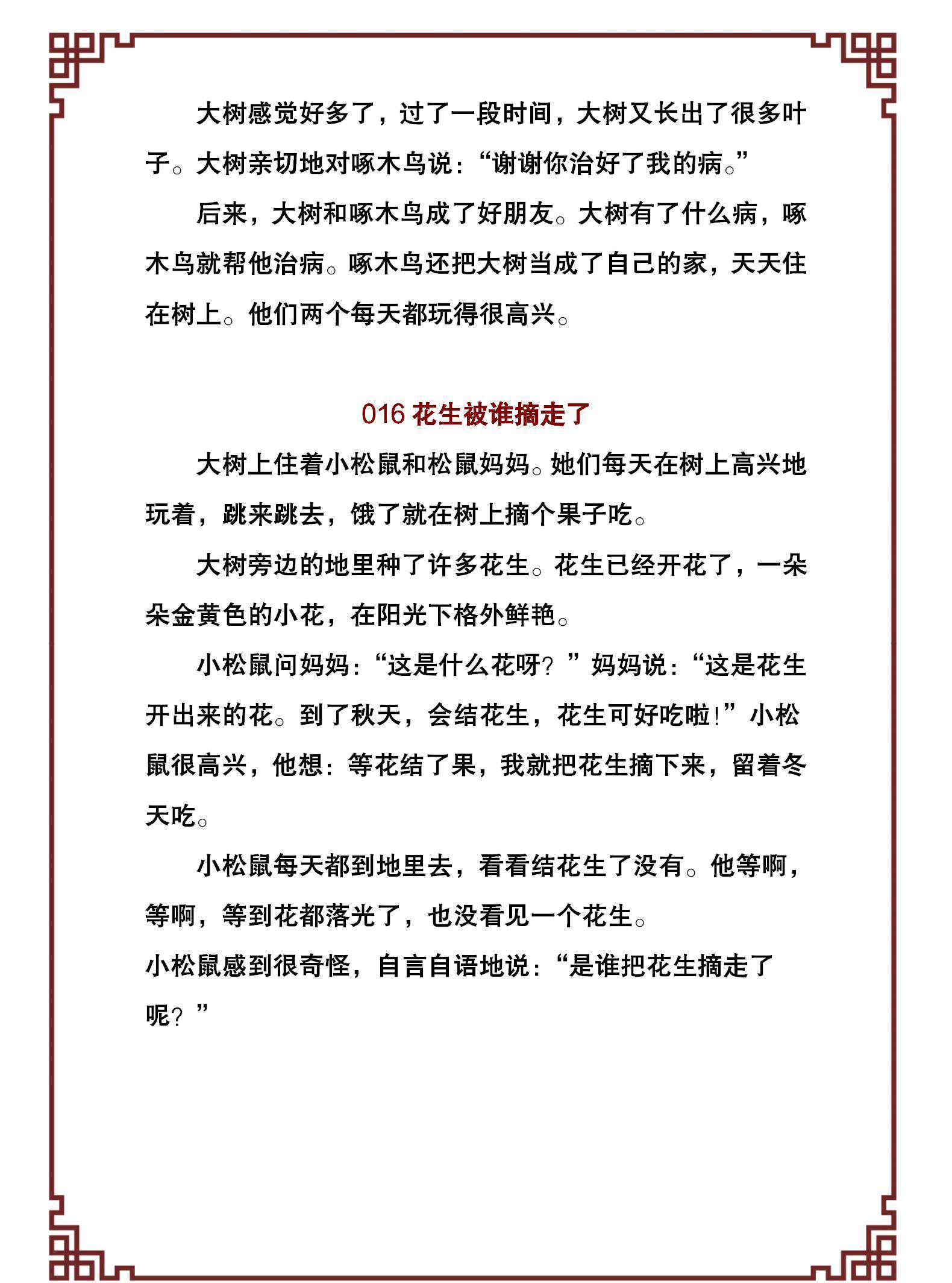 简介100个幼儿经典故事,激发孩子的好奇和学习兴趣,引导孩子爱上阅读故事可以激发孩子的好奇心,也激发学习兴趣,经典故事效果更好,家里有幼儿或小学生的家长们可以收藏保存,这100个幼儿精典故事,每天讲一个故事,讲给孩子听,为将来上小学奠定良好的基础,也为将来积累写作素材。100张图片,文章有点长,感兴趣的...