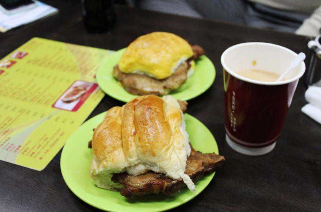 大利来记咖啡店的澳门厨师教老板用葡萄牙香料腌制肉类,老板还向中餐厨师学习如何将猪扒制作得更嫩滑,一来二去,夹着一整片猪扒的面包就被发明了出来。它分量不小还价格便宜,在上世纪70年代,家家户户的三餐都能见到猪扒包的身影。直到现在猪扒包依然红火,前阵子还被《十二道锋味》推荐了呢。