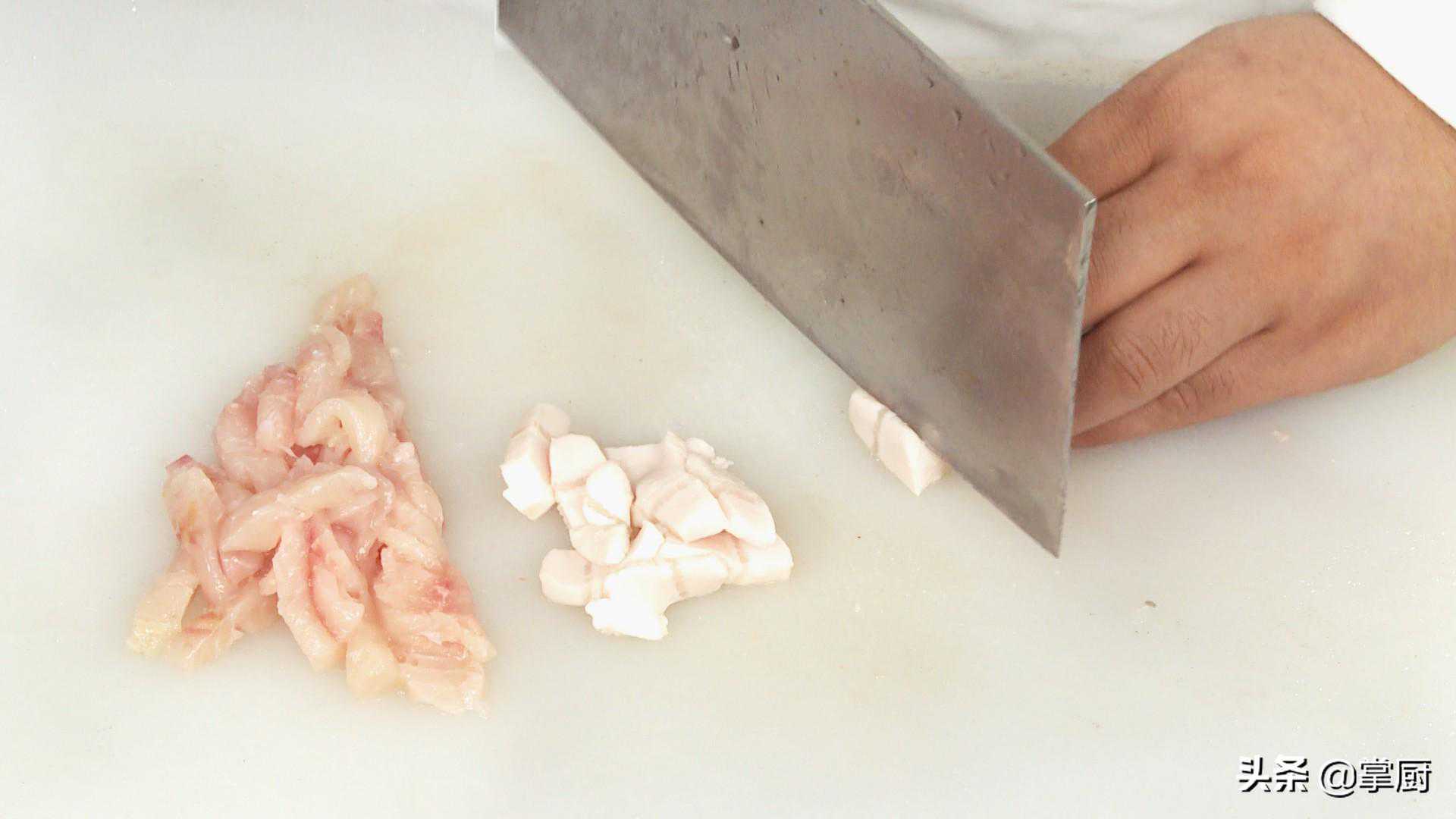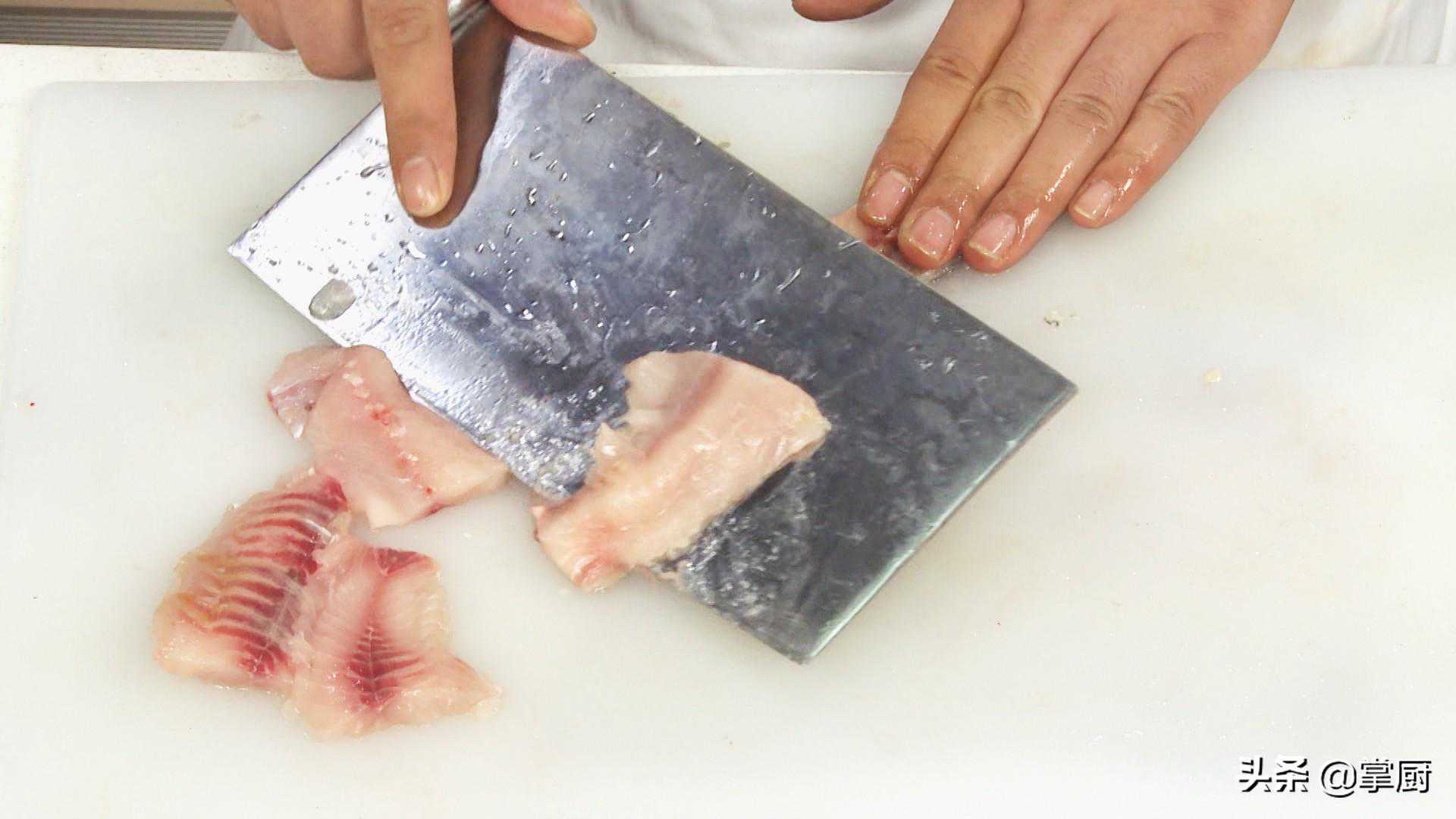 1将鲤鱼肉剔去鱼骨、鱼皮。