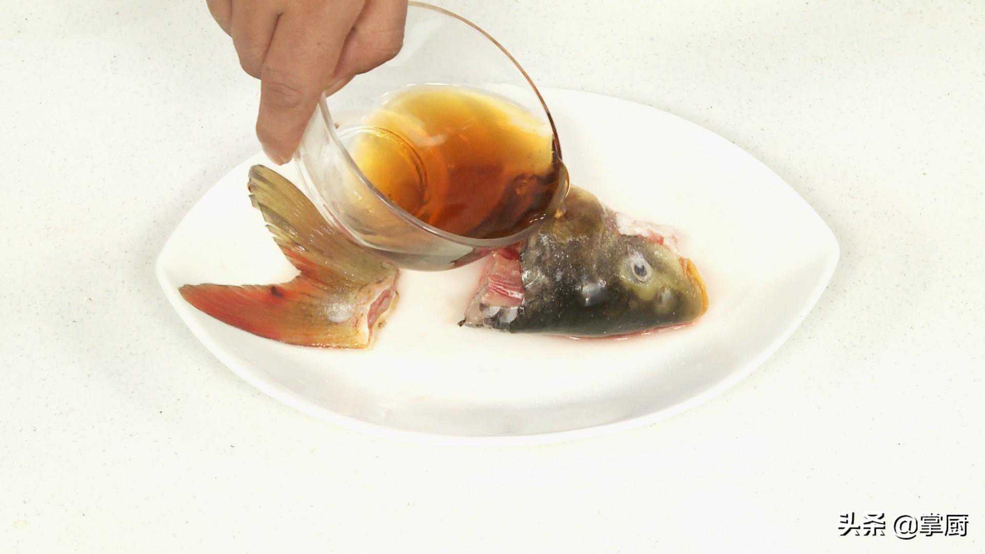 20取出蒸好的鱼头鱼尾。