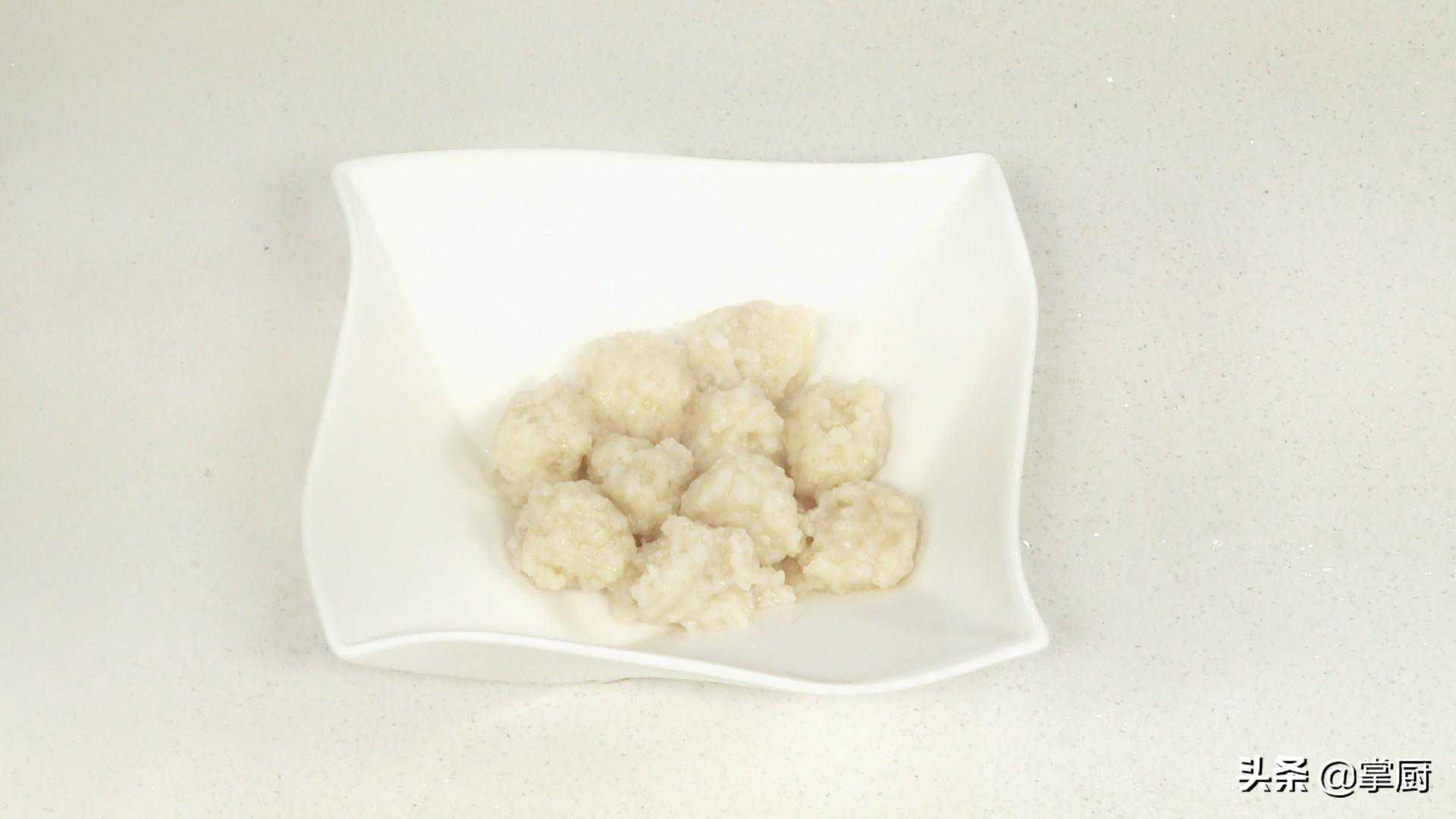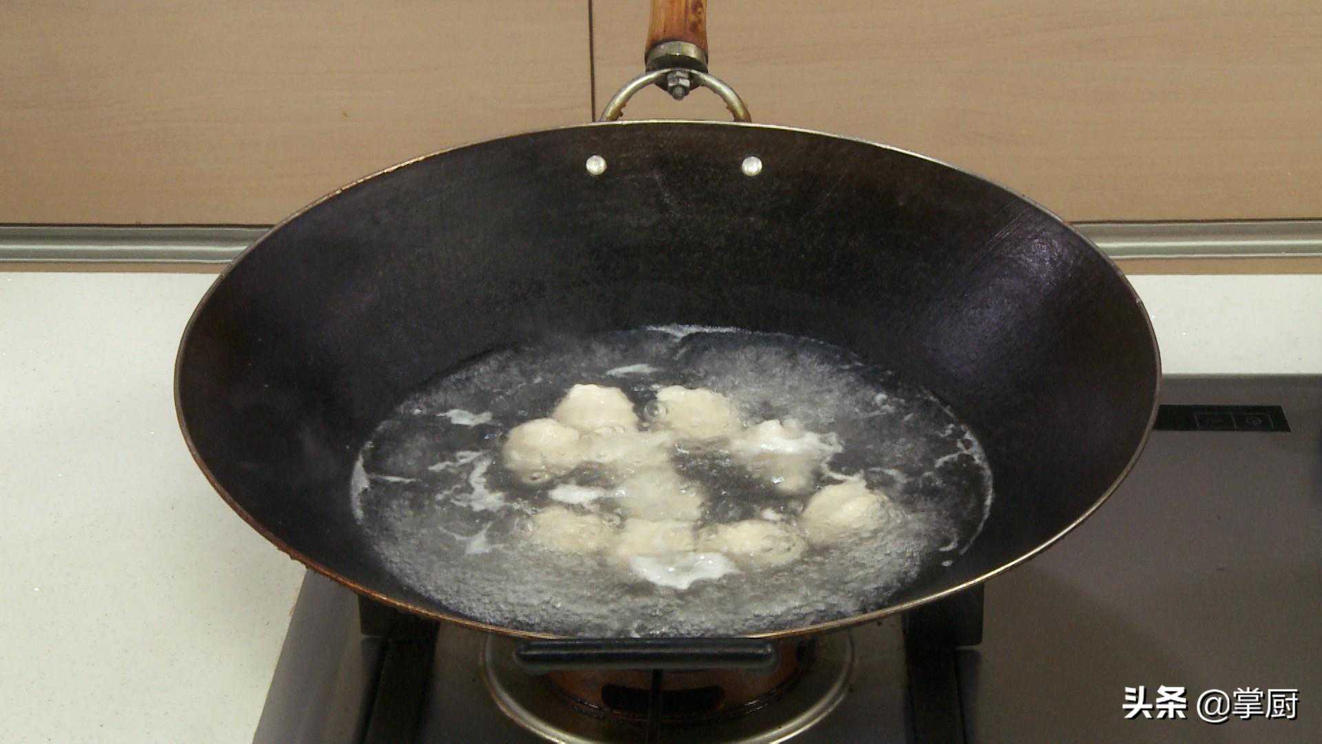 制作指导制成的肉丸可先放入清水中浸泡,这样可以避免鱼圆相互粘黏,然后再放入热水中煮熟。