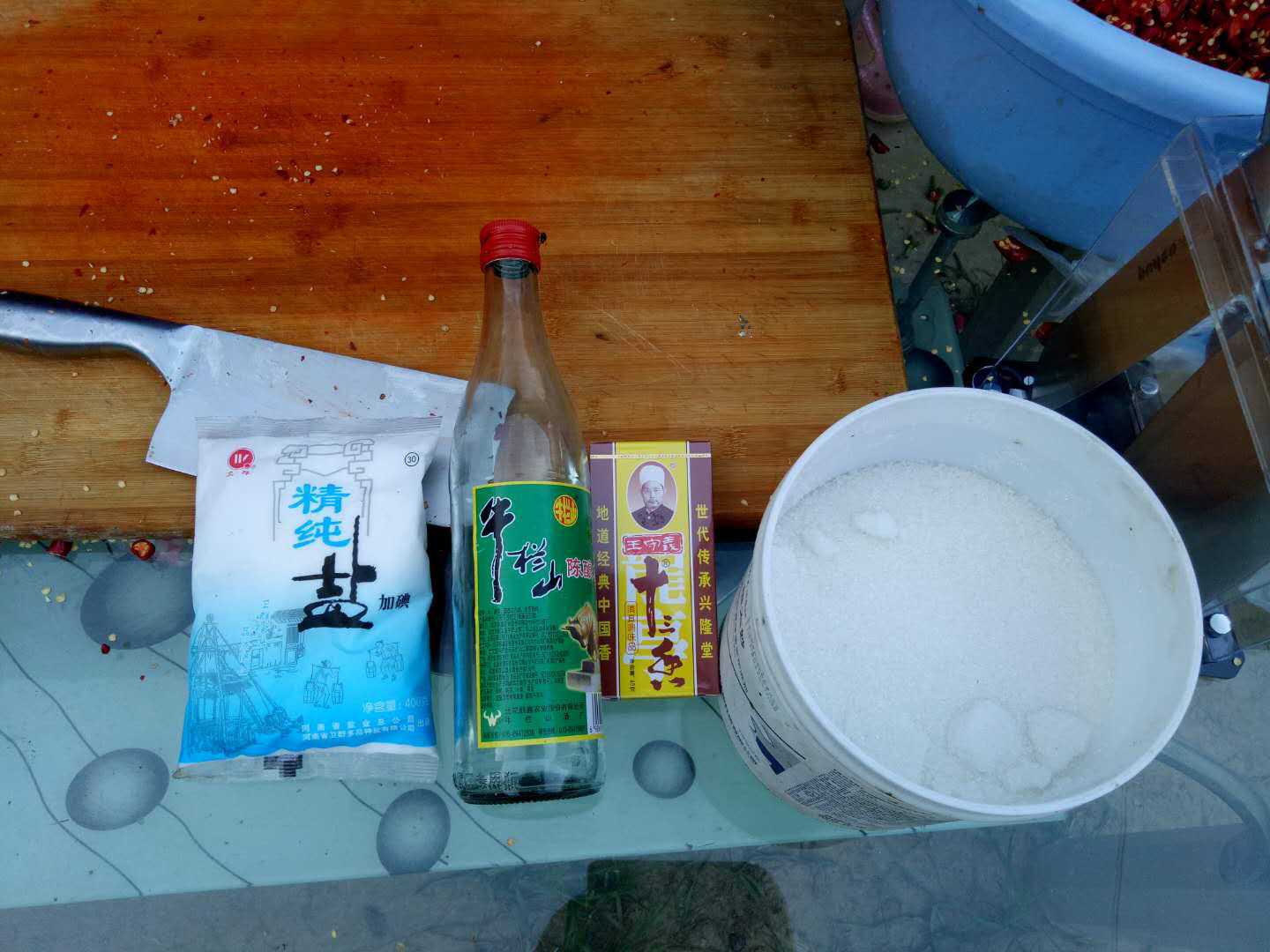 所需材料:大豆、辣椒、盐、五香粉、糖、油、白酒(一定要用白酒)。材料准备就绪,我们开始吧!