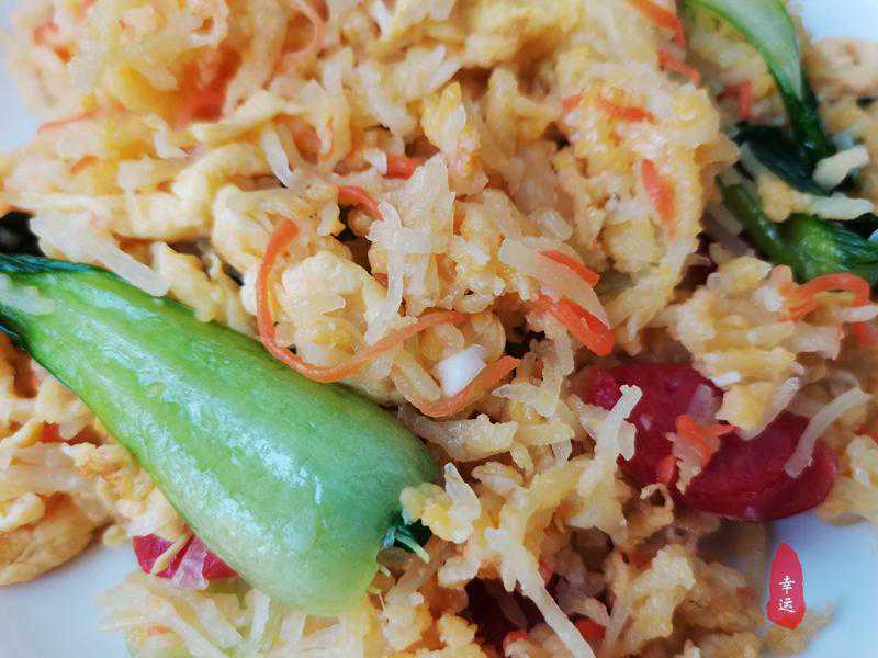 10、成品图。山西的小吃拨烂子,一蒸一炒口感软糯,有菜又有饭,色香味齐全。