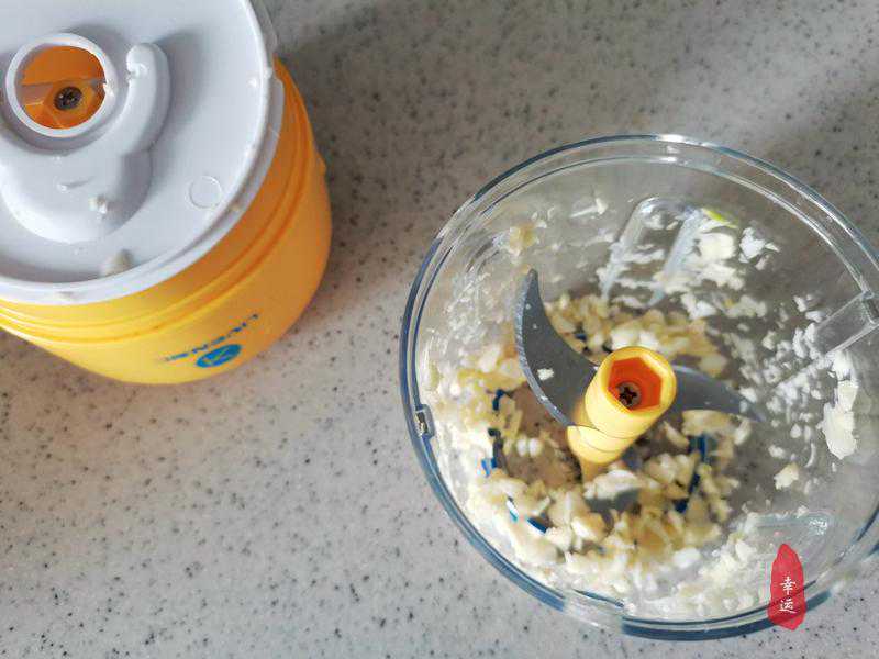6、利用等待晾凉的这段时间,用厨房料理机,将蒜瓣搅成蒜末,备用。