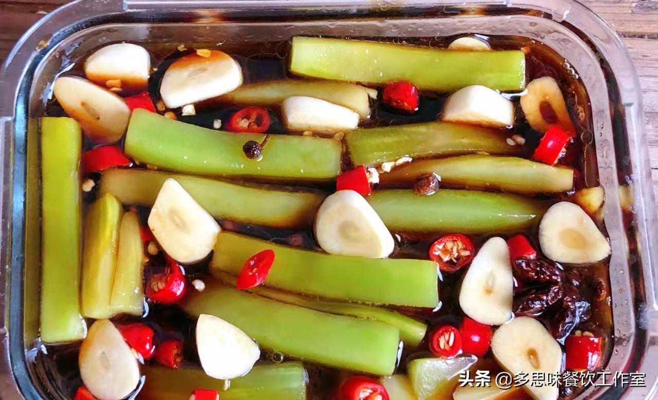 3:莴笋攥干水分➕凉透的汤汁➕蒜片小米椒腌制2小时以上即可。