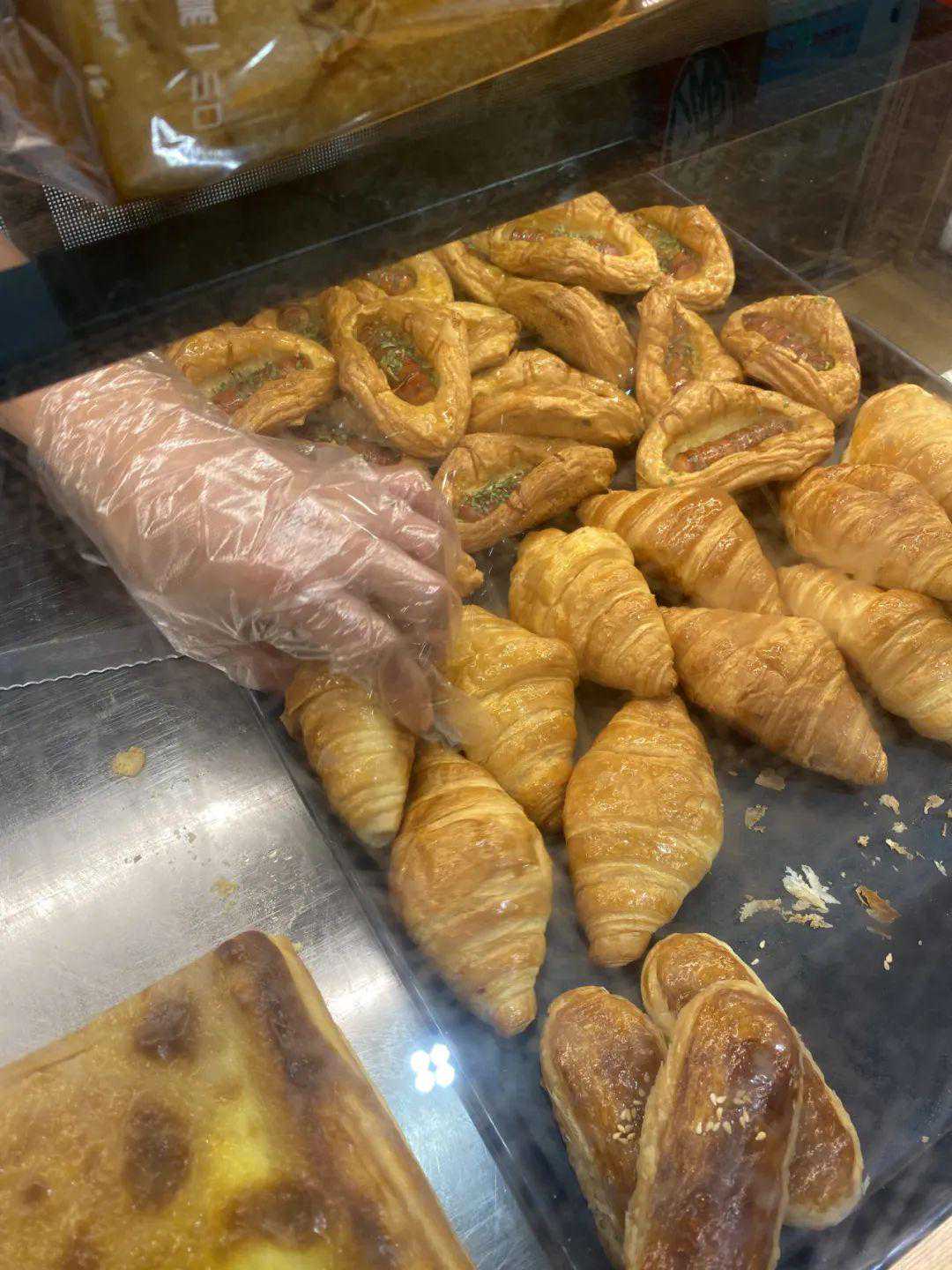 放眼过去,可以看到牛角包、小热狗、甜甜圈、榴莲酥等等。