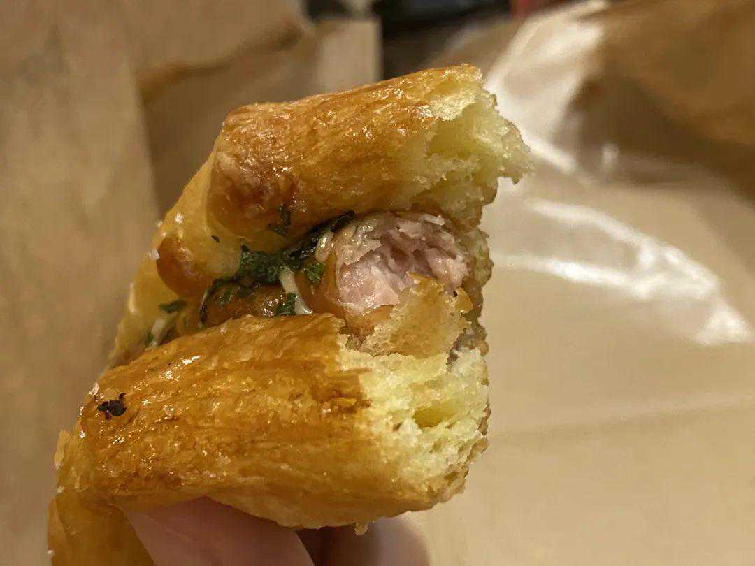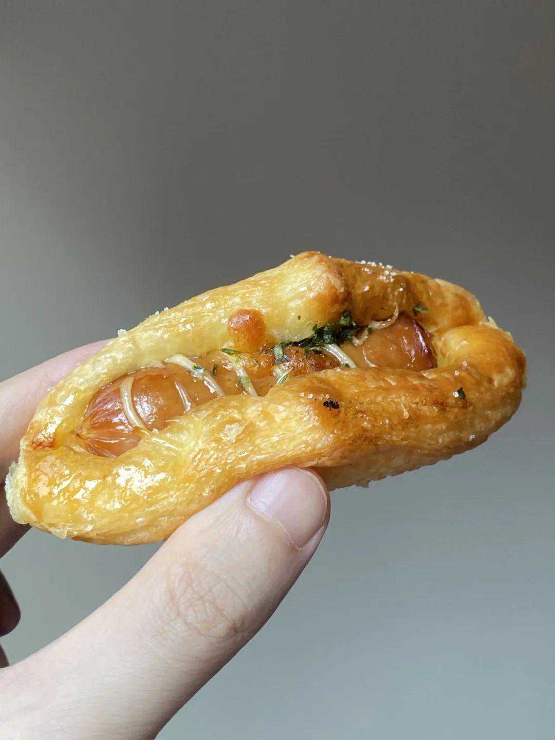 依然是咸甜的口感,烤肠很脆,混上一些若隐若现的芝士透出奶香,酥皮不算特别酥,但是紧实,拉长了咀嚼回味的时间。