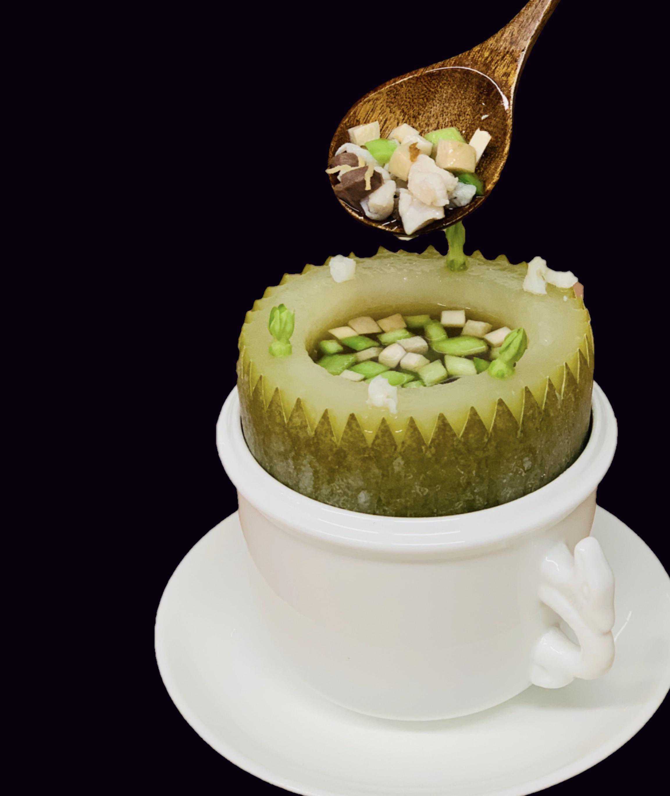 每逢大暑小暑,很多老广都会想起冬瓜盅这道名菜,广州不少餐厅在夏季都会推出自己的特色冬瓜盅。越华路珠江国际大厦的龙庭琇厨是不少美食家口中“专做心机菜”的精致餐馆,行政总厨邱金玉最近围绕冬瓜这个主题推出了两款时令菜: