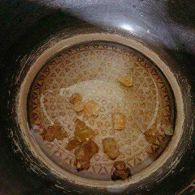 6、电饭锅按下煮饭键,倒入花生油,放入小粒黄冰糖^_^