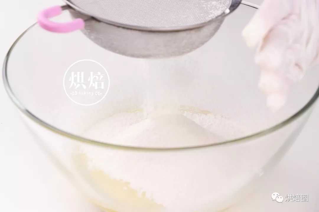 ③过筛加入低筋面粉、全脂奶粉、盐,所有材料搅拌均匀至无干粉的细腻的状态。