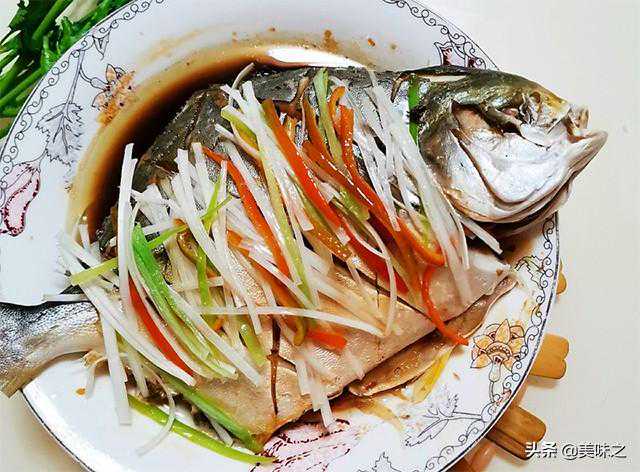 鲳鱼1条、生姜1块、红椒半个、大葱1段、油适量、盐适量、生抽适量。