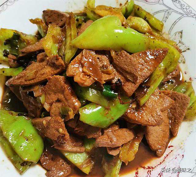 猪肝200g、青椒1个、油适量、盐适量、花椒适量、葱1颗、姜3片、老抽2勺、生抽3勺、料酒2勺。