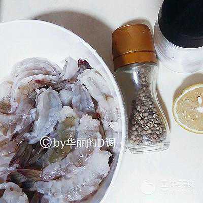 2、处理好的虾肉用盐,胡椒,1/3个柠檬的汁适当腌制。