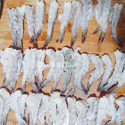 1、活虾去头去壳留尾,挑虾线。这个步骤耗时最长