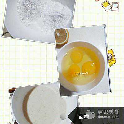 4、腌制虾的时间调制面糊:面粉、玉米粉、鸡蛋、盐、水调制成如图的面糊。