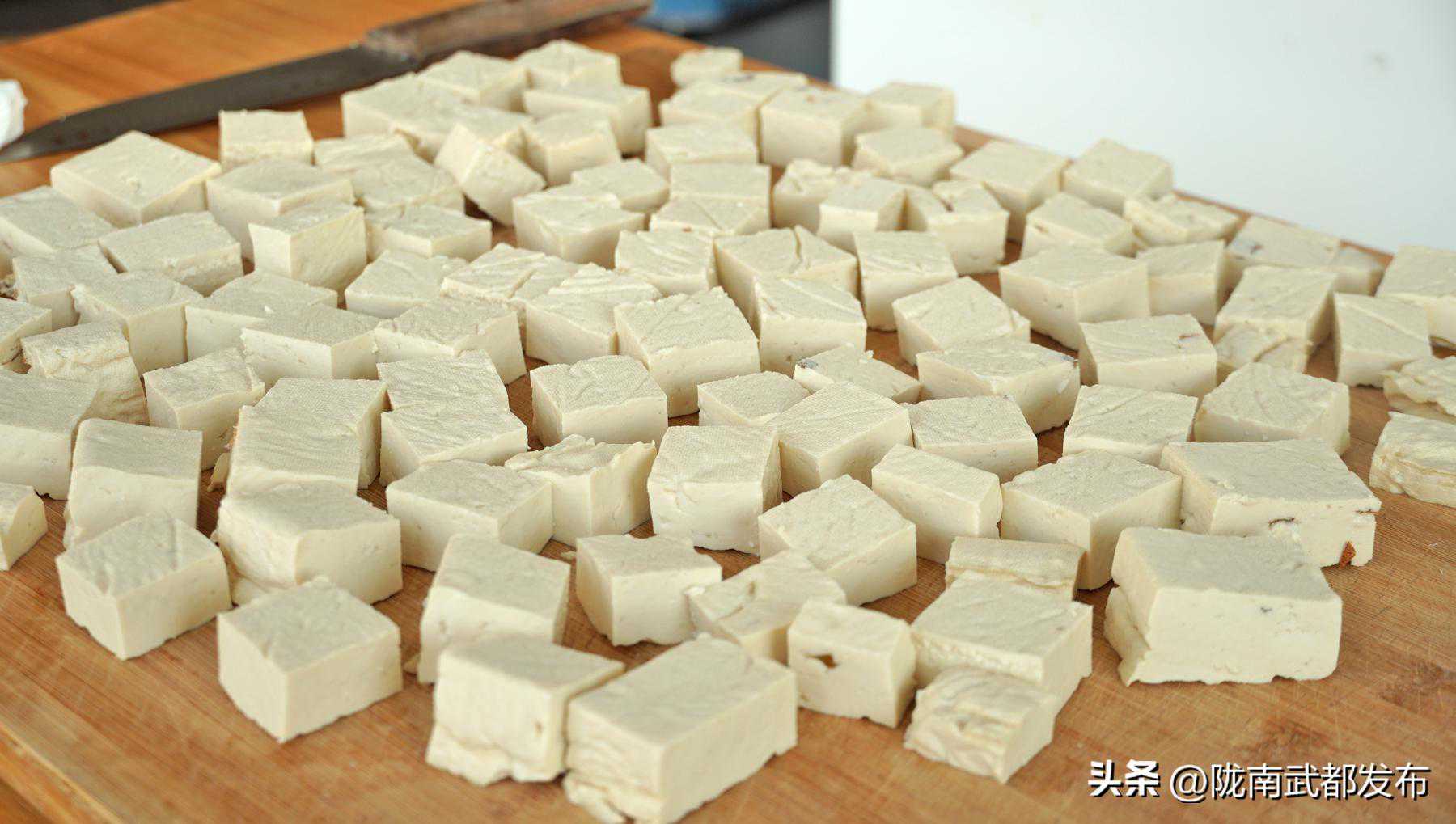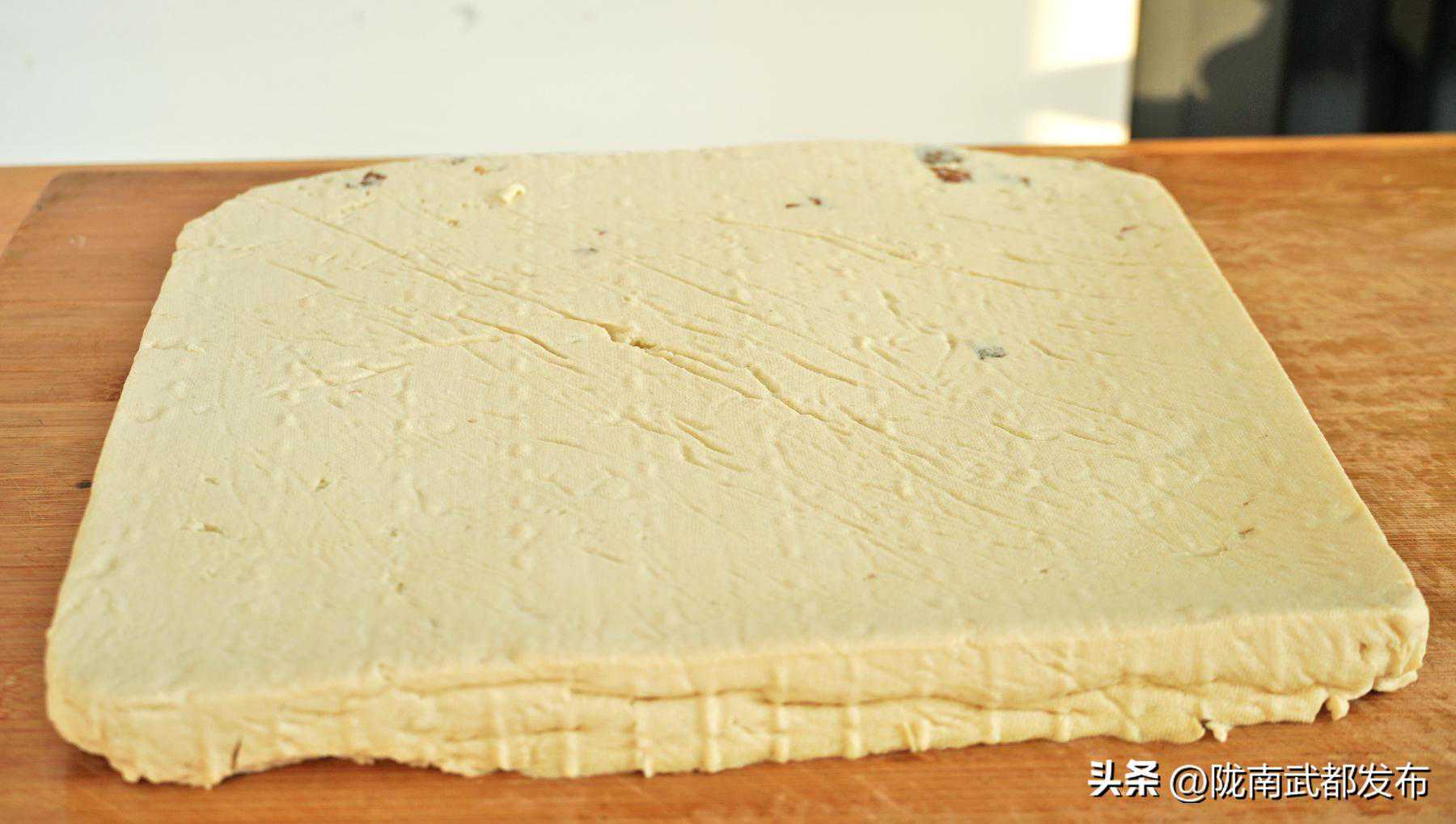 4、喜欢吃嫩豆腐的就压2-3个小时,喜欢吃老豆腐的就压一夜,这个豆腐其实比较,怎么做都会成功,主是看豆腐嫩和老的程度不同而已。