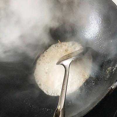 5、鱼面上放葱花拨热油,锅里底油放点姜丝
