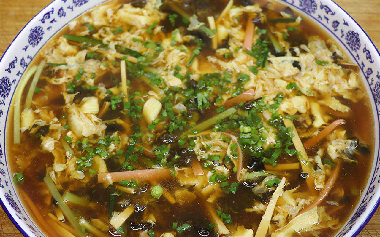 简介大家好,我是厨易,分享一学就会的厨房美食,欢迎交流,互相增进。天气渐渐转凉,总想吃点暖暖的食物,最好带点辣,开胃爽口的就更好了!这个时候,酸辣汤就成了首选啦!今天小易来分享酸辣汤的家常做法,食材简单,酸辣开胃,来看看怎么做的吧!所需食材:鸡蛋、木耳、鸡蛋干、火腿肠、黄瓜、香油、盐、鸡精、陈醋、胡椒粉...