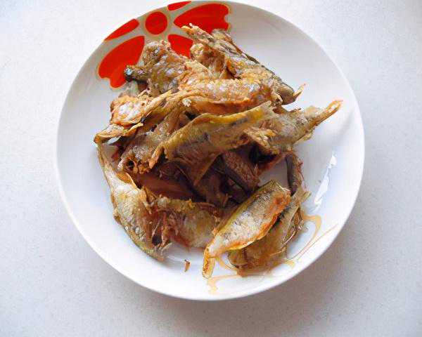 6、待油温升高至八成热时,放入小鱼复炸30秒钟,捞出控油,酥香的小鱼就炸好了。