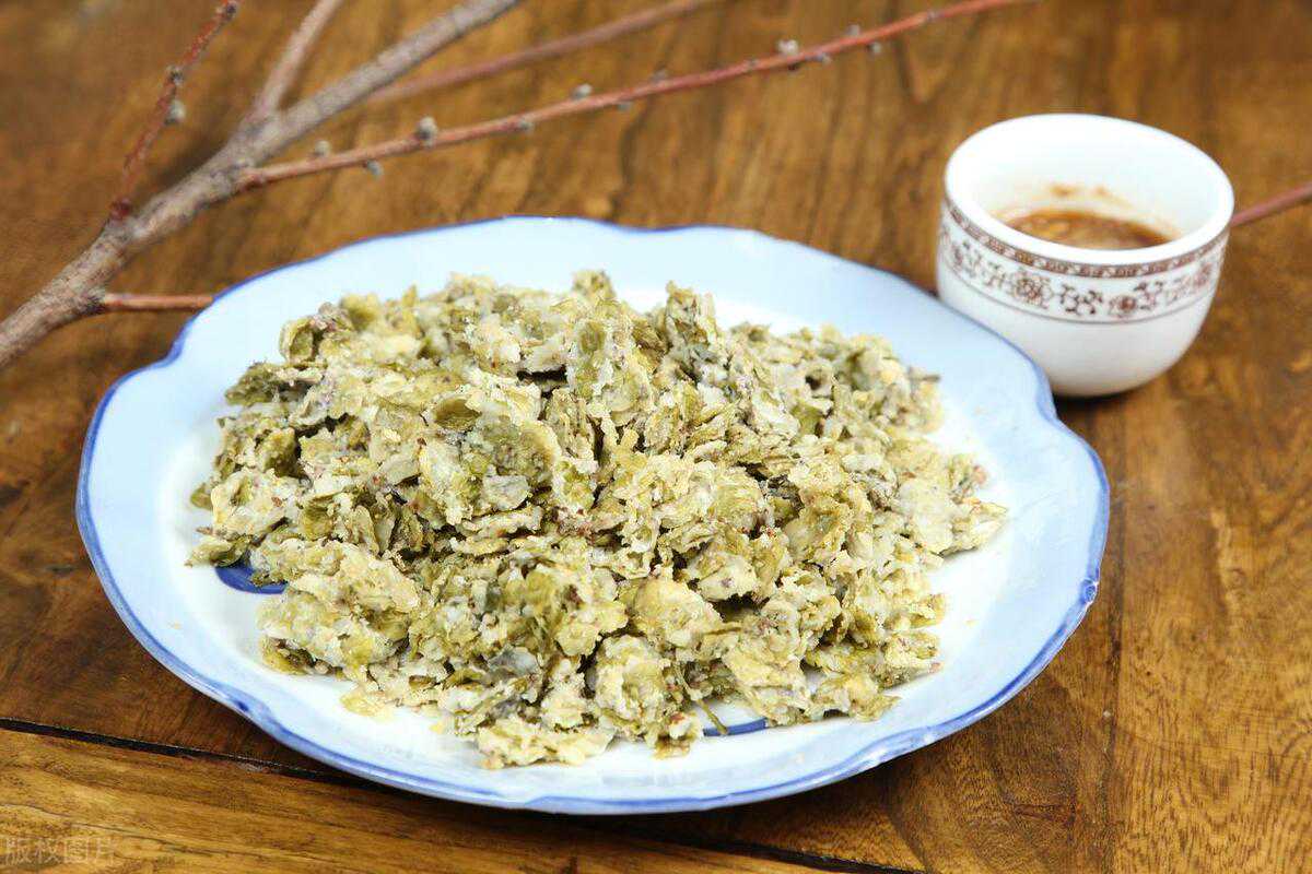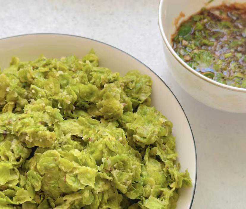粉蒸榆钱,也叫榆钱饭,这是比较经典的做法。用榆钱做粉蒸菜,比其他一些蔬菜也好吃,可以称得上最好吃的粉蒸菜了。每年吃榆钱的季节,都会亲自去摘一些,摘下来的可以直接吃,而粉蒸的榆钱,蘸上酱料,吃起来真的太美味了。