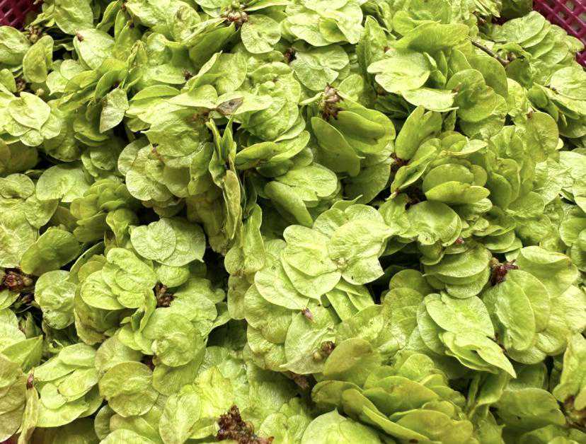 这野菜就是榆钱,而可食用的部位就是榆钱树的种子,因为长得类似古代铜钱,所以取名榆钱,自古就有吃榆钱有“余钱”的说法。榆钱不仅好吃,它的营养价值很高,首先它不含草酸,再者它富含维C、维E等多种维生素、矿物质等微量元素。而且它属于凉性食材,具有清热解毒、去湿热、抗菌抗病毒的功效。