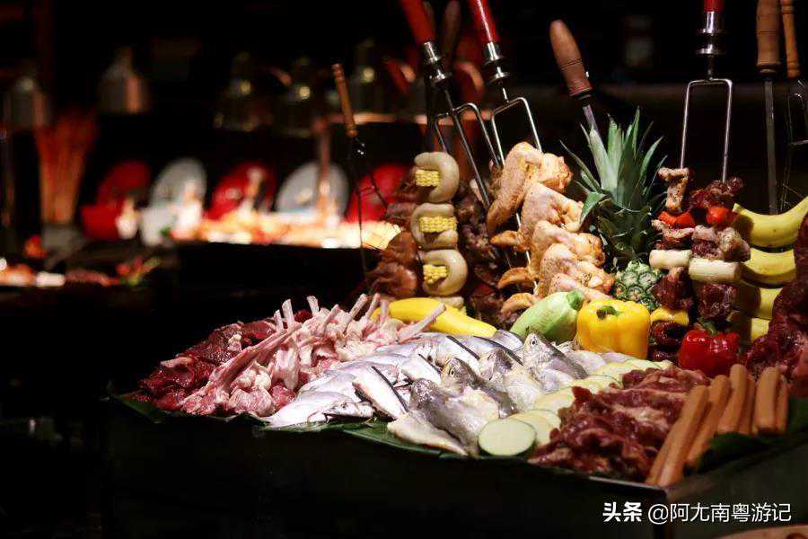 三角牛肉、鸡翅、烤肠、烤鸡腿等