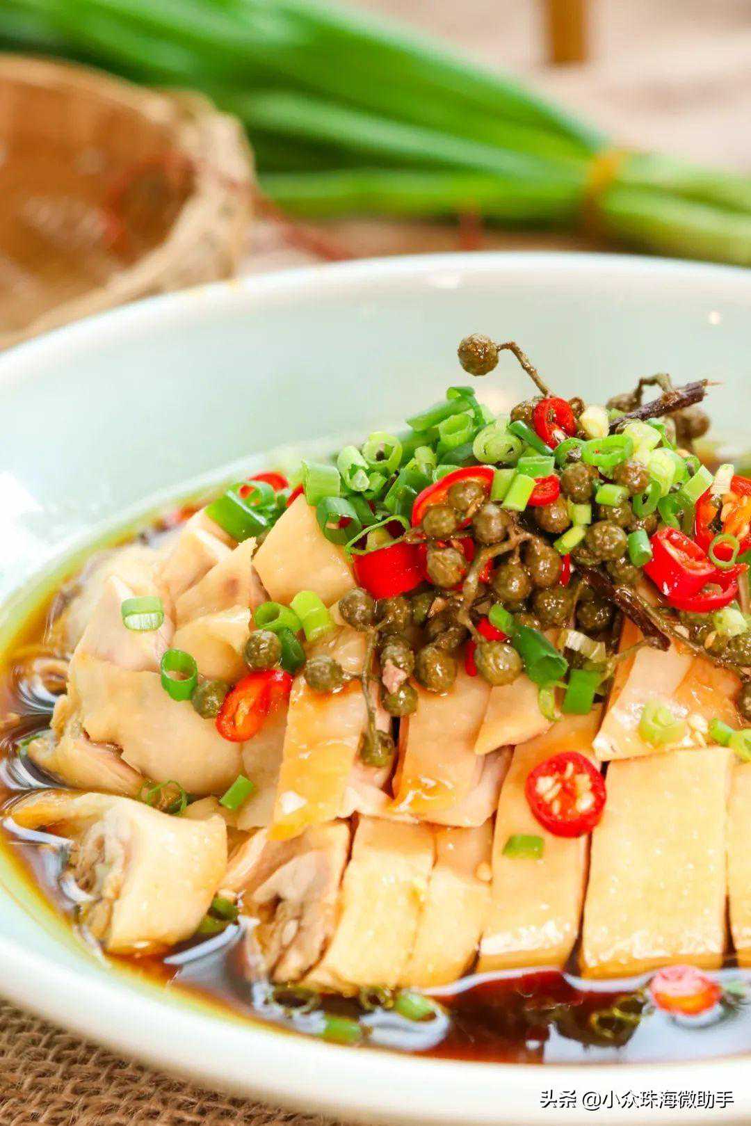 鸡肉的味道掺和着葱花小米椒,以及红油等佐料,味道层次丰富,辛香鲜辣,绝对是必点菜色!