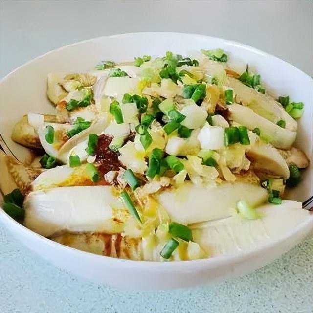 它的口感介于鲜竹笋和蘑菇之间