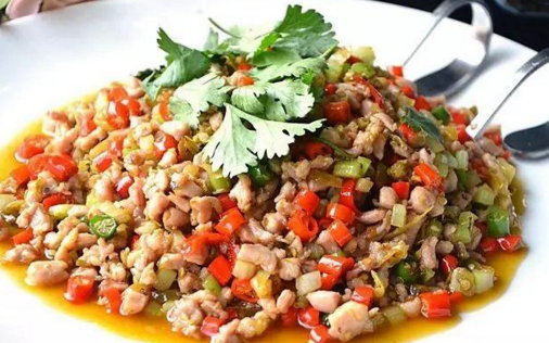 2.锅里放猪油和鸡油烧热,下泡姜、泡海椒和野山椒炒香后,放入酸菜节继续翻炒,等倒入鸡汤烧开后,调入盐、味精、鸡精和白醋,接着再把面坯揪成面疙瘩下锅,煮5分钟便可起锅装盘。