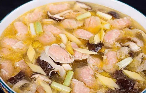 2.净锅入猪油和鸡油烧热,先放入野山椒、黄灯笼椒、姜片和葱节炒香,待舀入鸡汤烧开后,才把已经汆过水的虾皮饺、蘑菇和香菇,以及水发粉丝下锅煮一会儿,出锅前调入盐、味精和鸡精,同时淋入白醋和金瓜汁,起锅装盘便好。