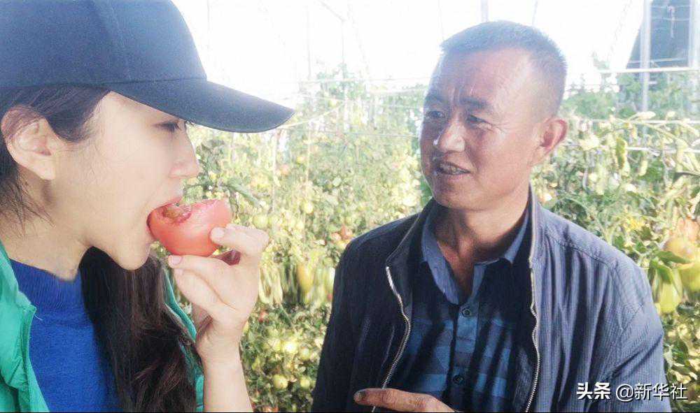 新华社记者董琳娜在“世界屋脊的屋脊”——阿里地区采访调研时,与噶尔县农业技术员史培能交流,品尝他们种植的西红柿。