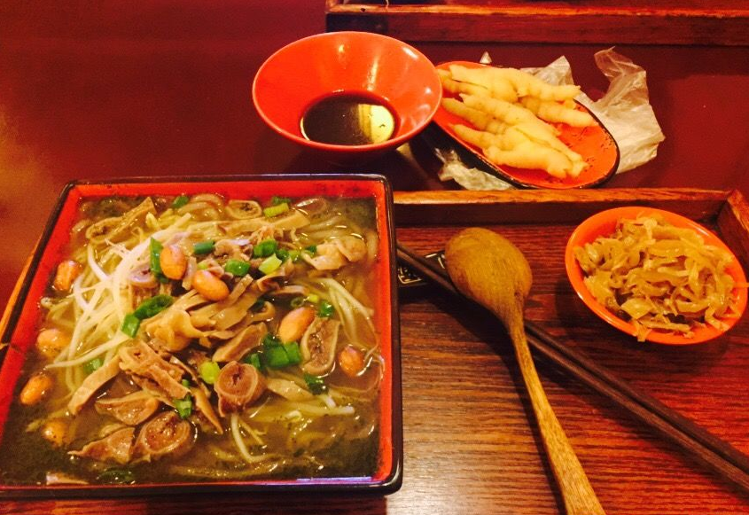 第二家是龙花担赐粉世家,它家的店铺也是很有老莆田的风格特色,店内装饰的都是旧时老莆田的器具。这家店的泗粉有些细,跟别家的不一样,口感爽滑又有嚼劲,粉里还加了一种香菜叶,味道也十分的美味。