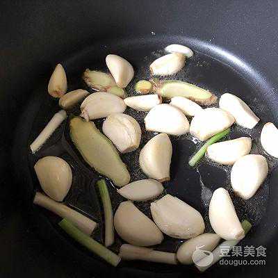 14、找一个平底的深一点锅,放葱姜蒜,蒜要多放一点