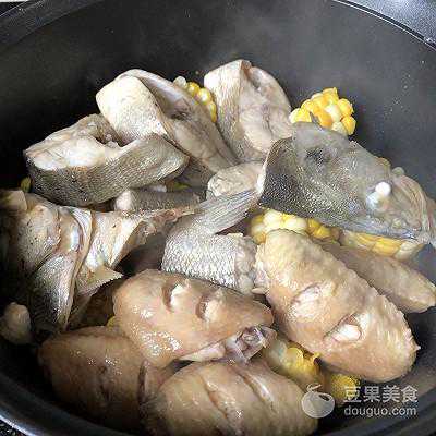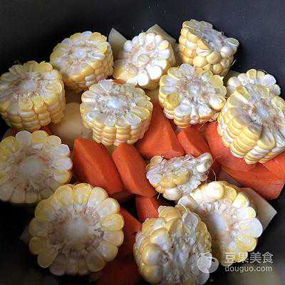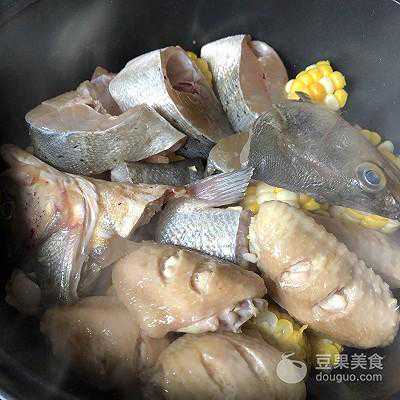 16、放入鸡翅,因为土豆和玉米水分少,我加了一点水,如果选水分多的蔬菜比如黄瓜西芹这些可以不加水哦