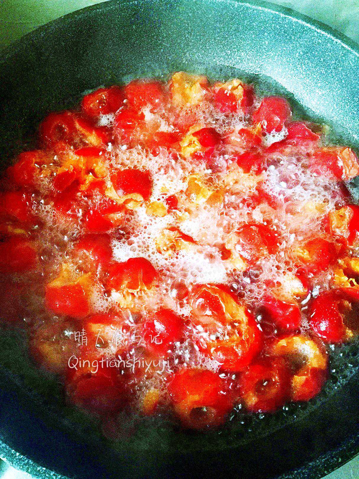 4、搅拌:做果酱类的东西记得自始至终勤搅拌,防糊锅底。