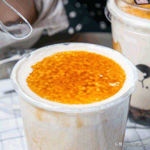 2012年的时候喜茶就出过一杯布蕾珍珠奶茶,现在又回来了,而且是2.0版本,必须用火烤!在茶底上加入布蕾后,撒上焦糖,用喷枪“滋滋滋”一顿操作,连空气中都是甜甜的焦香气!