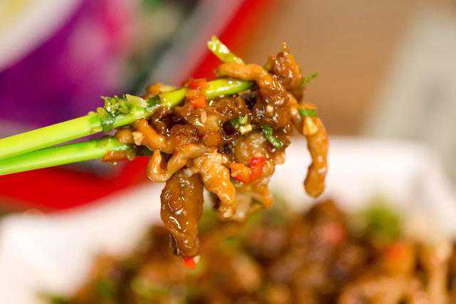 浓郁的酱汁,茄子丝,肉丝混合在一起,