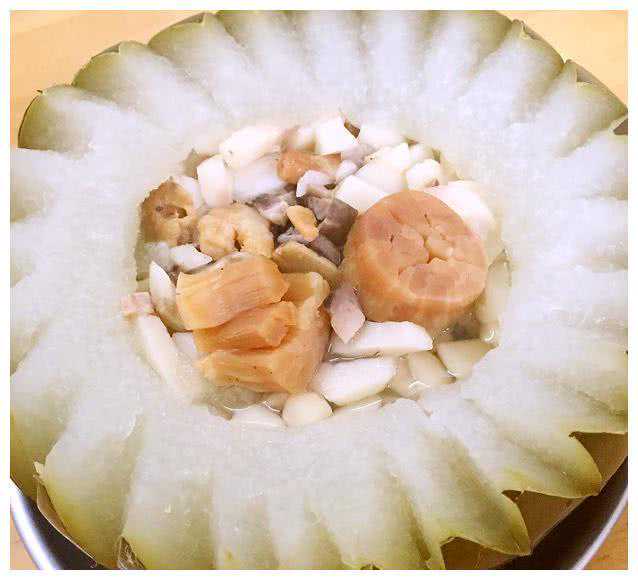 炖好的汤基本不需要放调味料,因为虾米、瑶柱、火腿等配料本身带有咸味了。