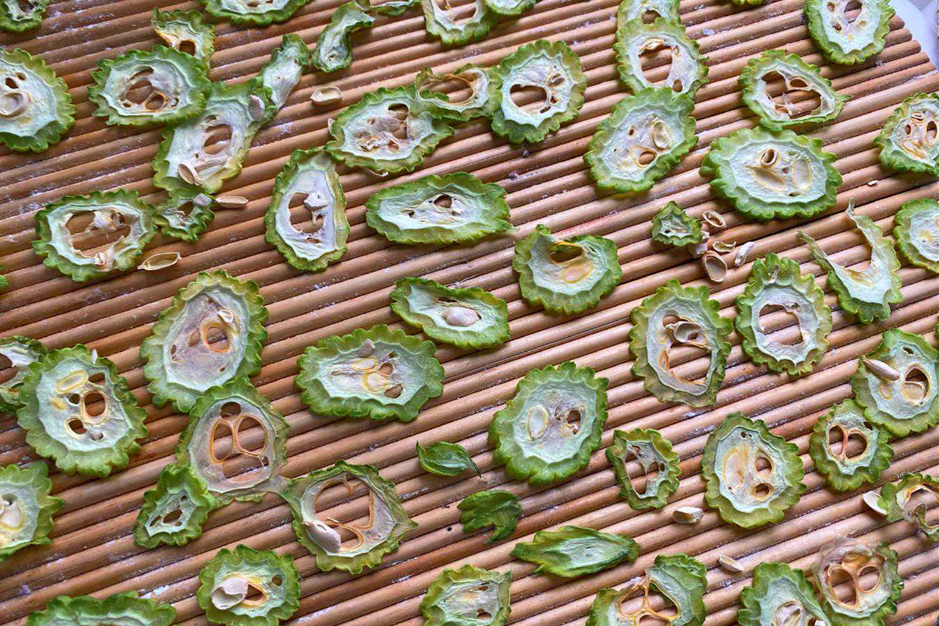 一点苦味也不喜欢的,晒苦瓜时可以将中间的籽去掉,正常的直接切片、切块晾晒干燥即可。