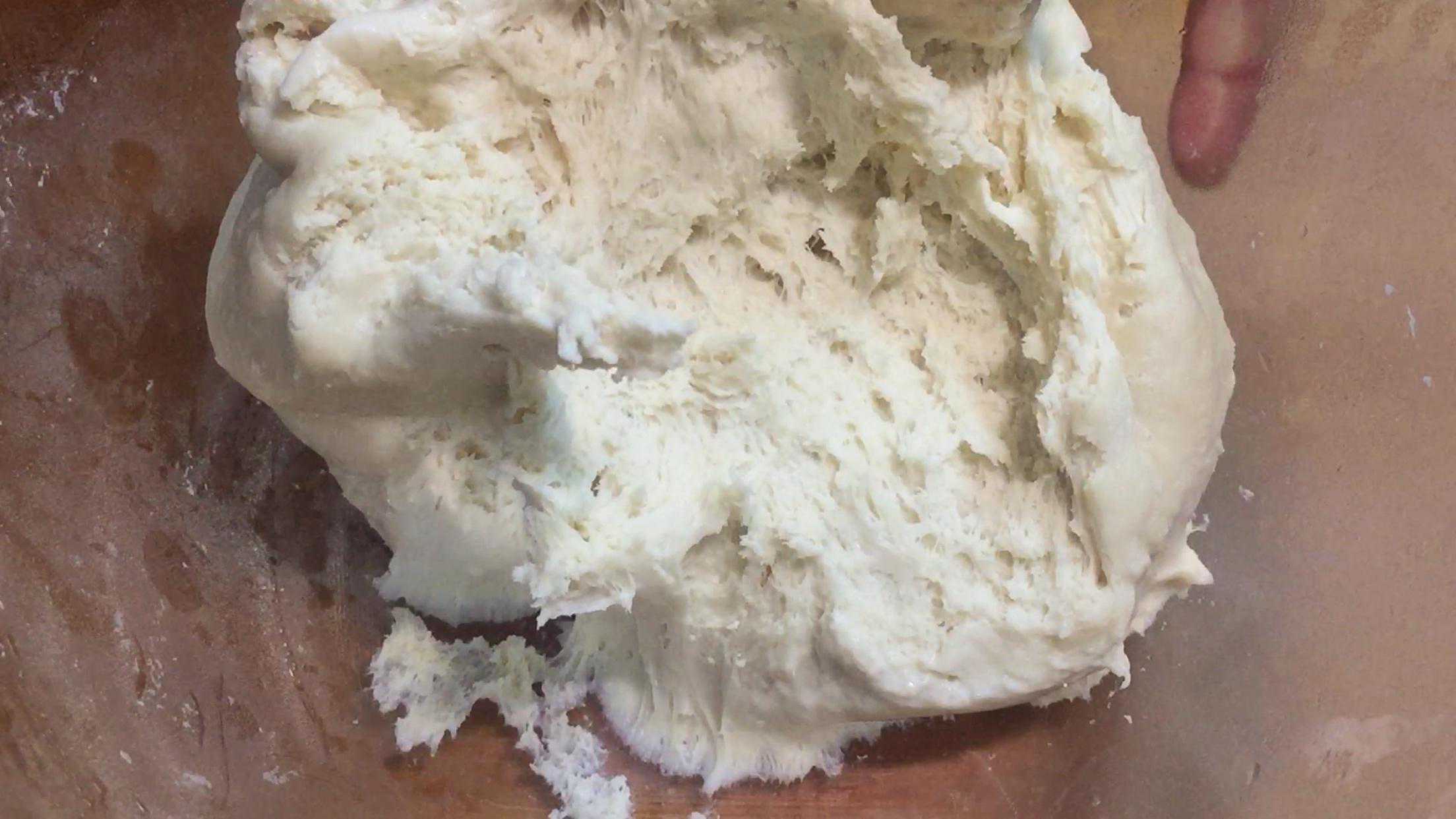 (3):最后反复揉压面团数次,这些动作反复进行,你就能揉出传说中的:手光、盆光、面光这“三光”的面团出来了。其实不难啊!