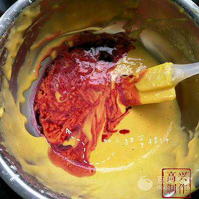 简介今天刚买的烤箱,试做一下。处女作,挺成功By杨小娥用料低筋面粉90g鸡蛋3个细砂糖50g食用油9g甜菜根适量果语原汁机一台做法步骤1、准备食材2、甜菜根用国语原汁机榨汁备用3、全蛋加白糖打发4、蛋液打发5、加入过筛的面粉,食用油,拌匀6、加入甜菜根汁,拌匀7、拌匀8、用裱花袋挤入纸杯9、烤箱180预...