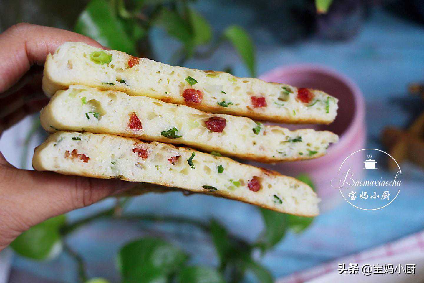 今儿分享一款香喷喷的早餐饼,三伏天最适合吃它了,尤其适合懒人和上班族,因为它实在是太省事了,不用揉面,还是发面的,好消化对胃也好,尤其是那俩“货”的加入,咋就那么香呢,反正自打我在某一天的早餐这样搭配之后,家人就再也离不开它了;香肠和小葱花,别看这俩不起眼,天生一对!