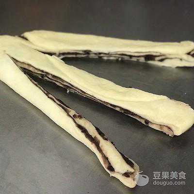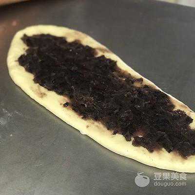 1、除豆沙、黄油之外所有的材料放入面包机或厨师机里,避免糖和盐接触到酵母,揉到扩展阶段后加入软化的黄油。