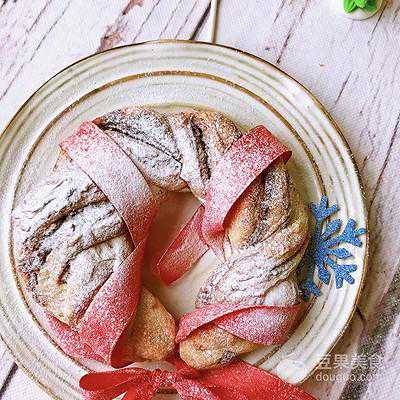 圣诞节就要到了,做上一款好吃又好看的圣诞花环面包是再合适不过了,夹上喜欢的馅料,美味又美丽!