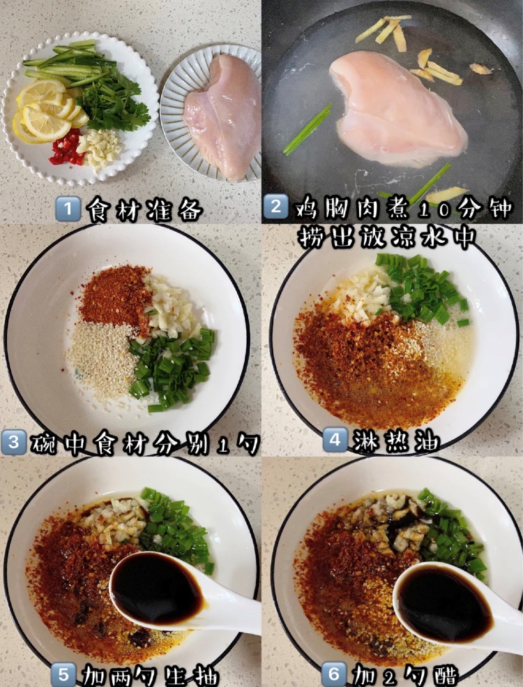 鸡胸肉1块、柠檬半边、小米辣3个、黄瓜少许
