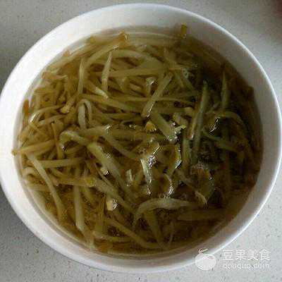 1、榨菜洗一下,切丝泡水一个小时。