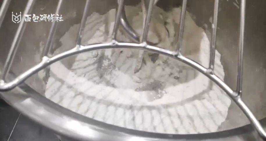 将其他原材料与隔夜中种一起放入搅面机进行搅拌。