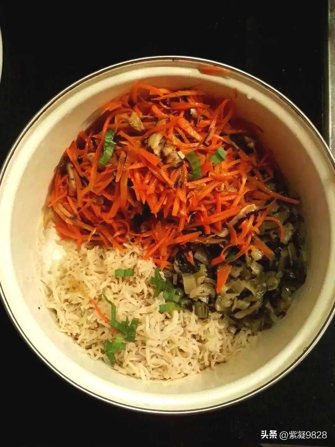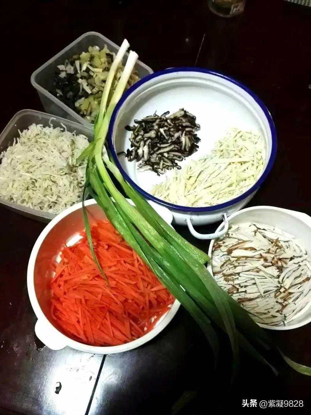 炒八宝菜,要把几种食材一样样先炒好,然后把炒好的各种菜放在盆子里拌在一起,这才是正宗八宝菜的做法。以前我不知道,是放在炉子上锅子里把各种菜和在一起的,还被正宗衢州人嘲笑,现在我也如法炮制了,因为既然是传统地方特色菜肴,那就得按传统方法炒制吧,也是传承当地美食文化喽,哈哈,炒个八宝菜竟然也炒出责任感来了。