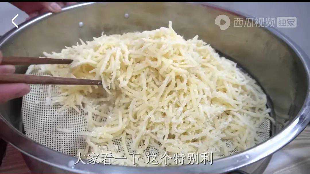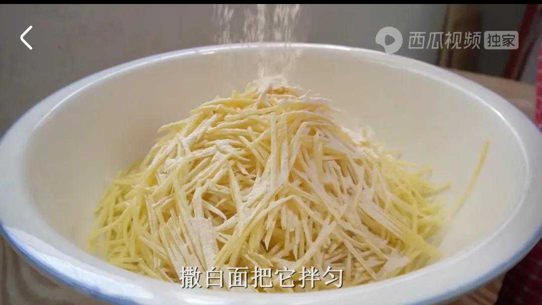 给土豆丝撒上面粉,看到这里大家基本就明白了,我们做干煸土豆丝好像也是这样做的,只是做干煸土豆丝一般都是用的玉米淀粉。